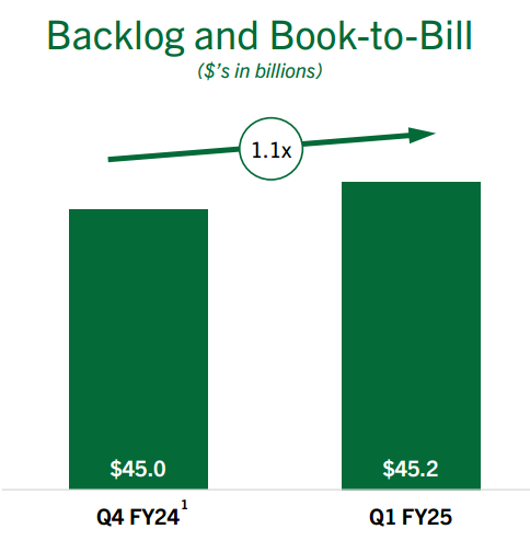 - Book-to-Bill Ratio: Reported at 1.1x overall but a stronger 1.5x including unconsolidated JVs, a key contrast to some peers reporting weaker BTB this quarter such as for BAH.