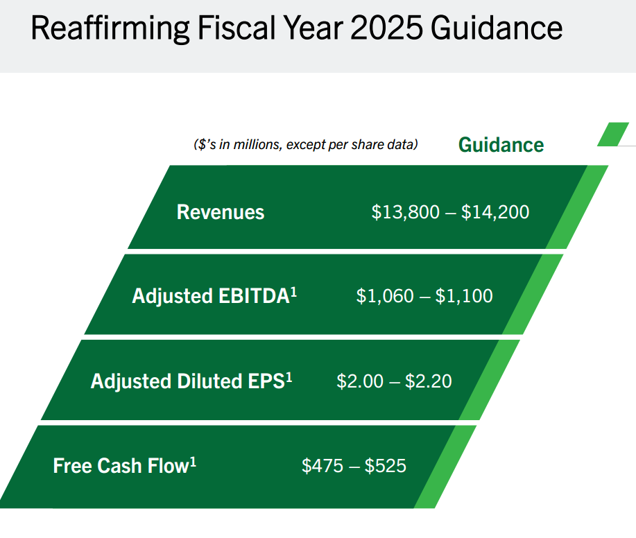 Amentum reiterated its FY 2025 guidance (below) from last quarter seeing no material negative impact from the new administration and its initiatives. Based on today’s closing price, the company trades at the following metrics: